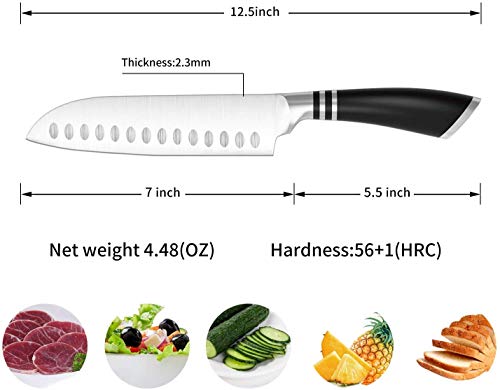 ORPIO (LABEL) Premium 7 inch Stainless Steel Meat Knife for Kitchen Chopping, High Carbon Ultra Sharp Santoku Knife Japanese Cooking Chef Butcher Knife for Meat and Vegetable Cutter (Santoku Knife)