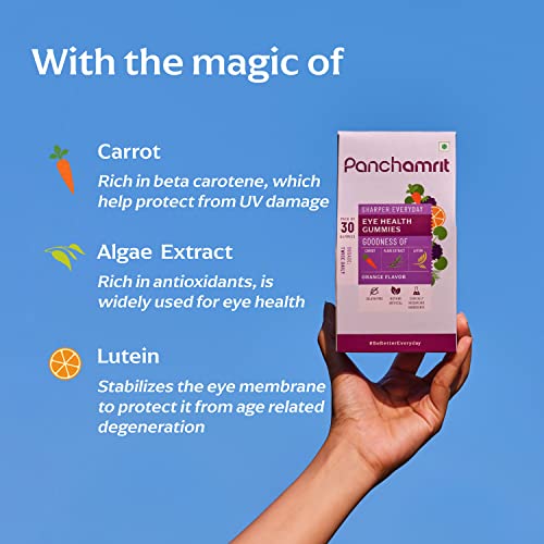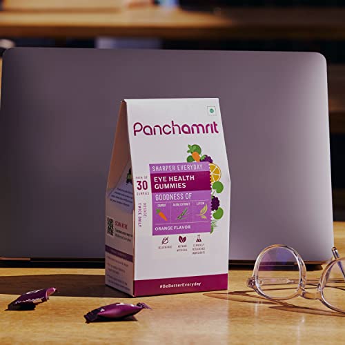 Panchamrit Eye Health Gummies for Kids & Adults | enriched with Lutein, Zeaxanthin, Carrot Powder & Ayurvedic herbs| Protects against Blue Light Damage, Digital Strain and Dry Eyes | 30 Gummies (Pack of 3)
