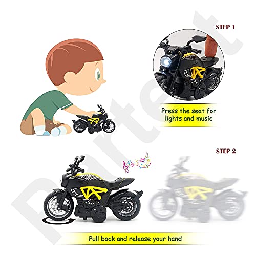 Parteet Die-Forged Steel Sport Bike Pull Again with Gentle and Sound, Bike Toy for Youngsters Boys(1Pc) White