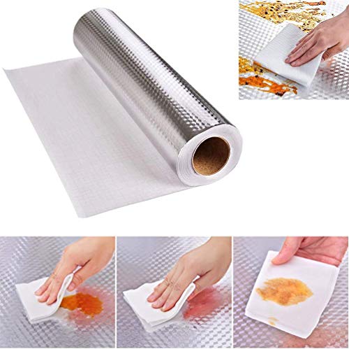 PATRUVIN 60CM X 200CM Kitchen Wallpaper Oil Proof Waterproof, Self-Adhesive Wall Sticker for Kitchen Anti-Mold and Heat Resistant Aluminium Backsplash Wallpaper for Walls Cabinets Drawers and Shelves