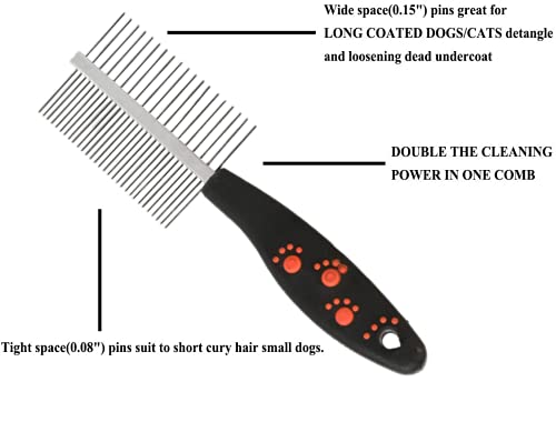 ✅Double-Sided 2 IN 1 Utilization: The Coarse Comb Tooth can Breaks up small fur mats & loosens knots + fluffs & smooths giant areas;The opposite facet finer comb enamel is ideal for detailing small areas across the face, advisable for skinny coats