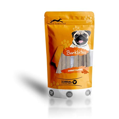 Pets Empire Barkbites Dog Treats 70 GMS (Carrot Flavour ) + Pets Empire Fruity Chewy Sticks Pest Dental Stick Dog Treats Provides Health Benefits Strawberry Flavor Weight 120 GMS