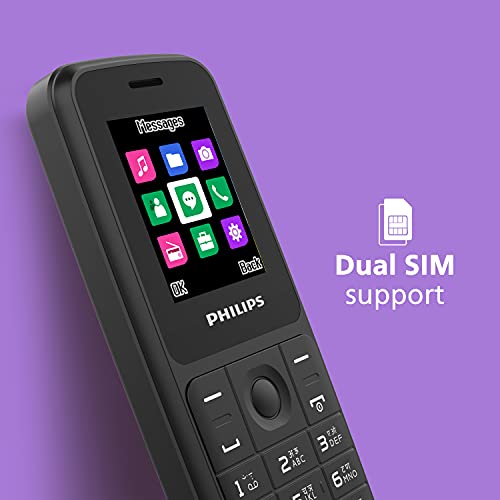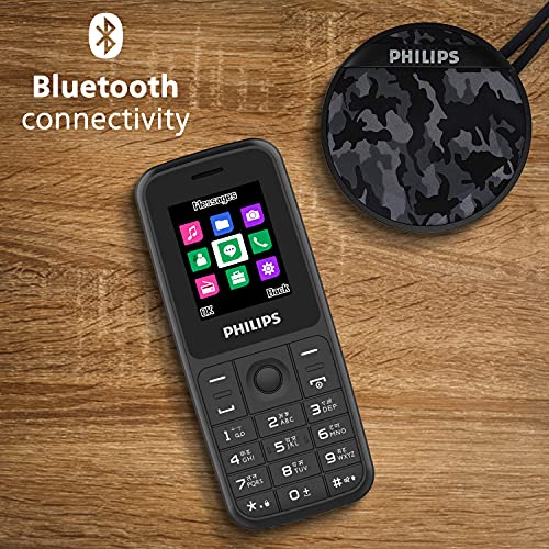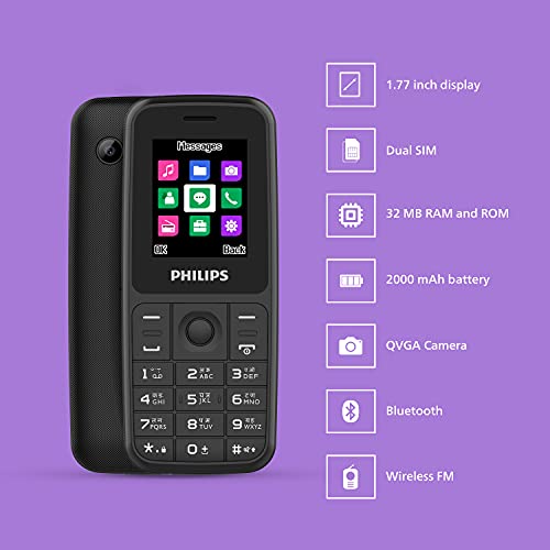 PHILIPS E125 Multimedia Characteristic Keypad Cellular Primary Bar Cellphone with Twin SIM, Rear Camara, Name Recording, Music Participant, FM, Bluetooth, Help 22 Learn Language, 3.5mm Audio Jack (Black, 1.77 inch)
