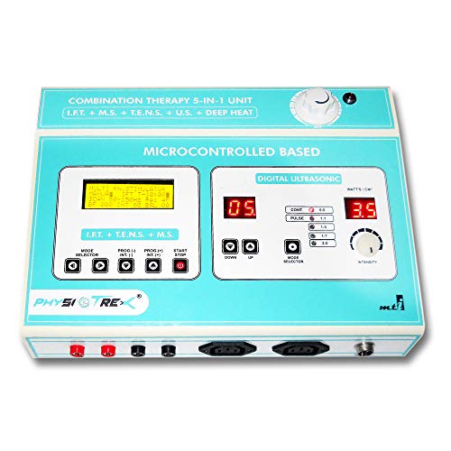PHYSIOTREX® Electro Therapy Combination 5 IN 1 LCD 125 Programs Computerized IFT MS TENS US Deep Heat Machine with 1 Year Warranty (Color May Vary)