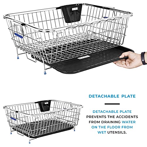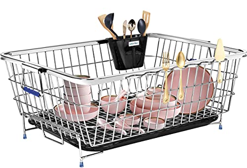 Larger in Measurement : 56x43x22 CM. This dish drainer basket solves out the important a part of kitchen group by draining and storing all of the washed utensils effectively. The water drained out is not going to depart your flooring moist. This utensils basket retains your storage space dry by amassing all of the drained water in a tray which is detachable and really affective.