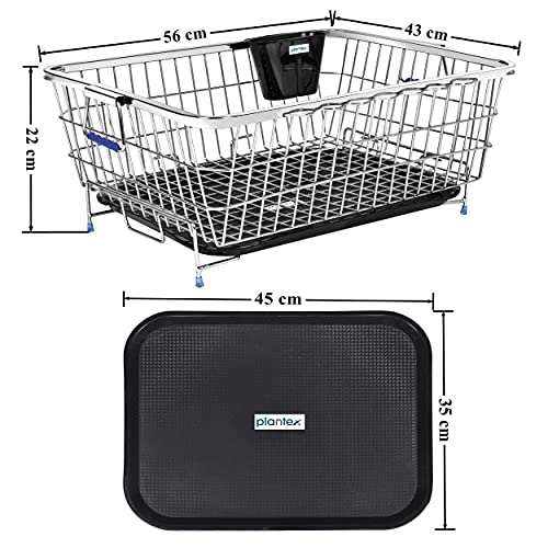 Aside from different sorts of racks out there within the market, Plantex kitchen rack for utensils is the heaviest of all. Measurement of this dish drying rack with drainer is (56x43x22 CM).