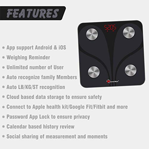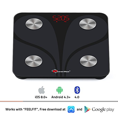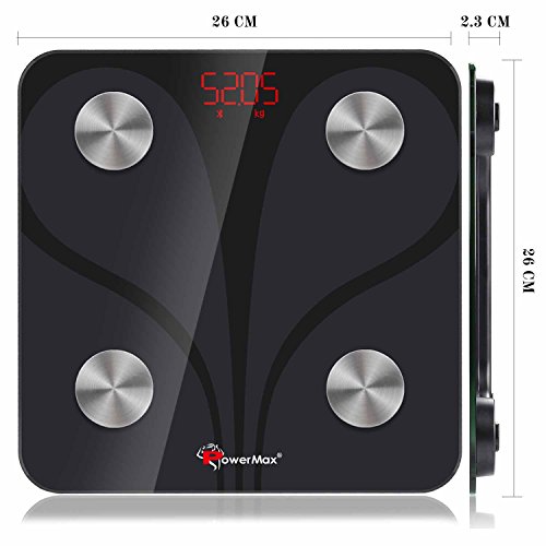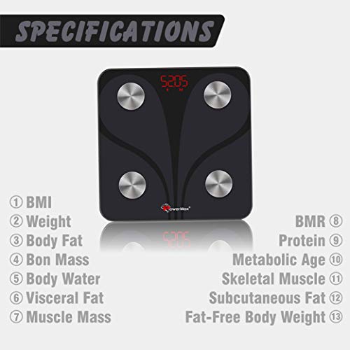 PowerMax Fitness® Bluetooth Body Fat Scale – Smart BMI Digital Bathroom Wireless Weight Scale & Body Composition Analyser with Smartphone App