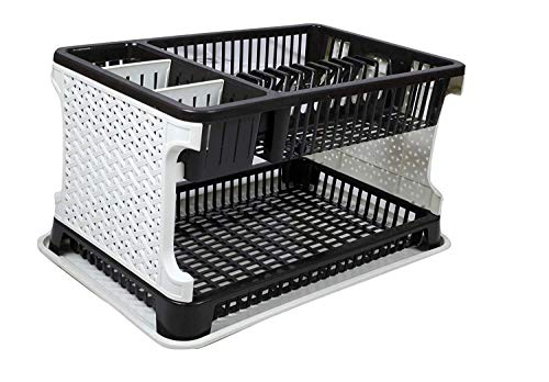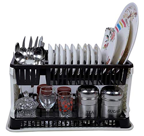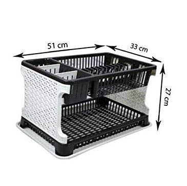 PRAMUKH FASHION 2 Layer Kitchen Dish Organizer Storage Rack ,Cutlery Utensil, Fruits and Vegetable Drying Drain and Storage Stand with Water Storing Tray (Black)