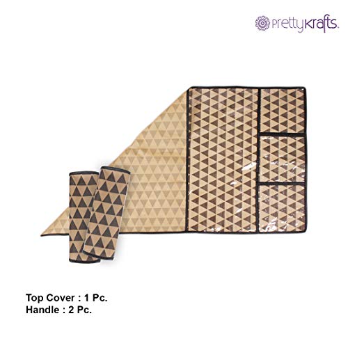 PrettyKrafts Premium Combo of Refrigerator Fridge Top Cover with 6 Utility Pockets, 2 Handle Cover, Dust Free & Easily Washable, Trio BB