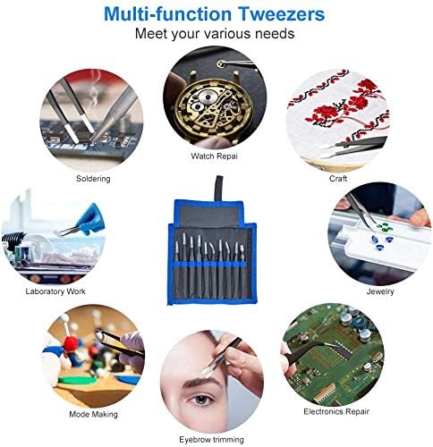 CONVENIENT OPERATION: The precision tweezers set is designed with ergonomics. The handle of tweezers is very comfortable to hold, and the fingers will not be tired after long time use. And each tweezer tip is packed by a plastic cover. All tweezers are packed in a canvas tool bag, easy to portable and easy to store.