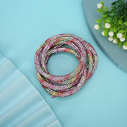 Rhinestones Chain, Rhinestones Tube Ribbon Practical DIY Convenient for Wedding Dresses for Dresses for Shoes for Necklaces for Clothing Accessories(Rainbow Color No. 2)