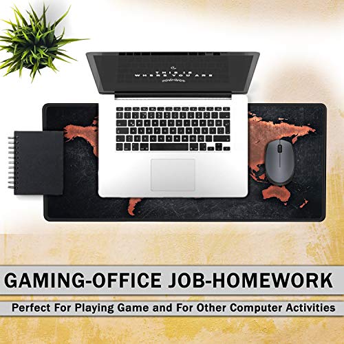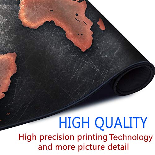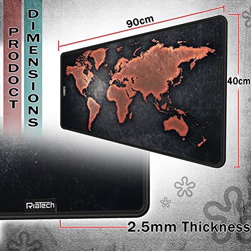 RiaTech Extra Large Size Vintage World Map Extended Gaming Mouse Pad with Stitched Embroidery Edges, Waterproof Keyboard Pad (900mm x 400mm x 2.5mm)