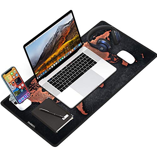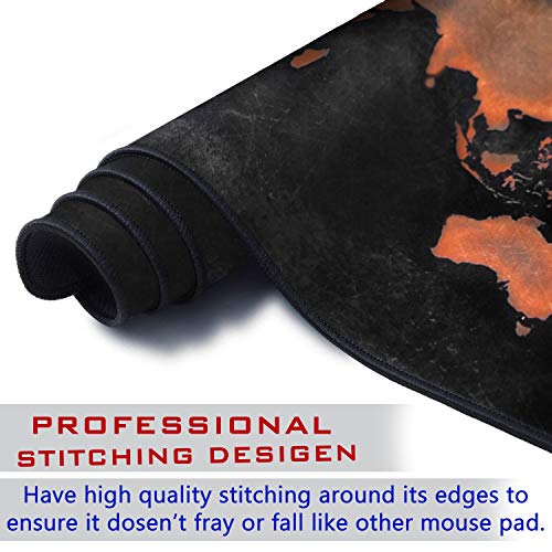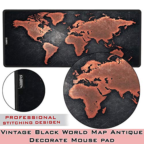 RiaTech Extra Large Size Vintage World Map Print Antique Decorate Extended Gaming Mouse Pad with Stitched Embroidery Edges, Non-Slip Rubber Base Computer Waterproof Keyboard Pad (900mm x 400mm x 2.5mm) -Black