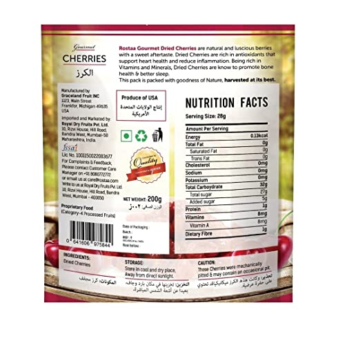 Rostaa Dried Cherries 200 gm (Pack of 3) | Gourmet Super Food | Healthy Food