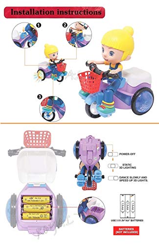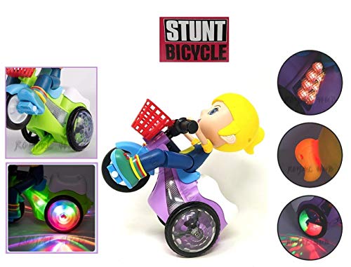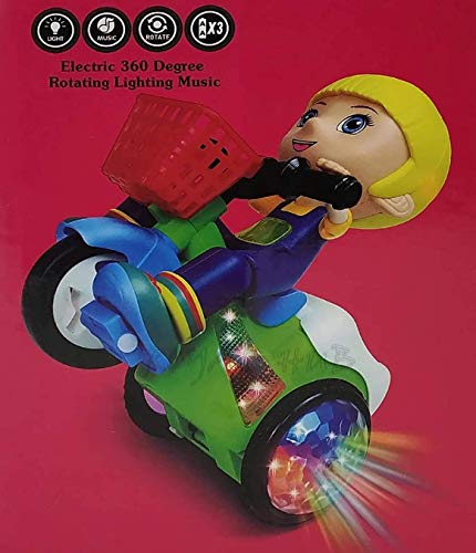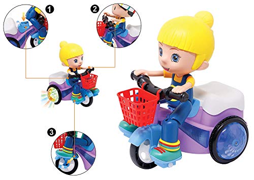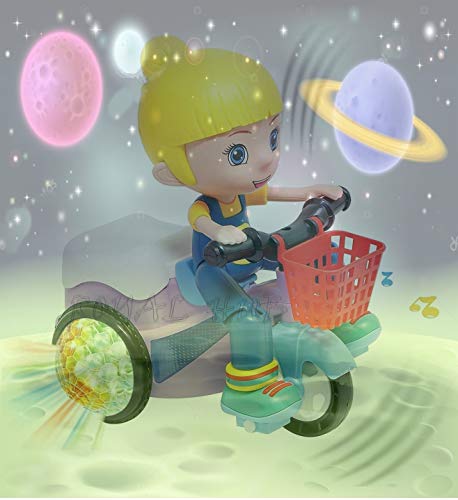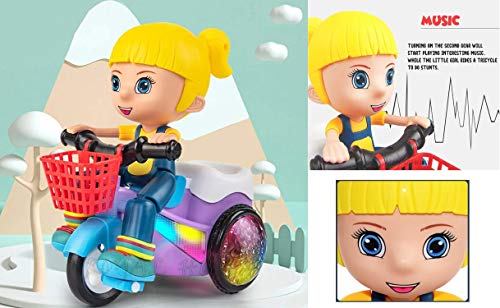 Royals Hub® Light and Sound Musical Stunt Bike Tricycle Bump and Go Scooter Toy – 4D Flashing Light Effects and Music Girl Stunt Motorcycle with 4D Lights, 360 Rotation Movement