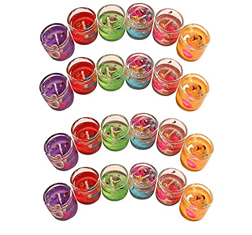 RSP Luxurious Small Multicolor Smokeless Embellished Mini Cute Little Glass Jelly Gel Candles for House Décor Diwali Ornament, Spa, Birthdays Celebration, Festivals (Set of 24 Items Measurement- 2.5×2.5 cm)
