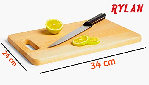 RYLAN Large Natural Bamboo Wood Chopping Cutting Board for Kitchen Vegetables, Fruits & Cheese, BPA Free, Eco-Friendly, Anti-Microbial Chopping Board for Kitchen (34 x 24cm.)