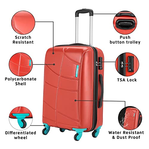Features – TSA Lock, 4 Wheel with premium interiors, Unbreakable shell made of polycarbonate, Medium size