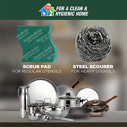 Scotch Brite Stainless Steel and Scrub Pad Combo, 1 Steel Scrubber (15g) + 2 Scrub pads