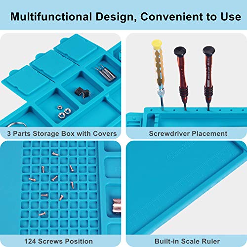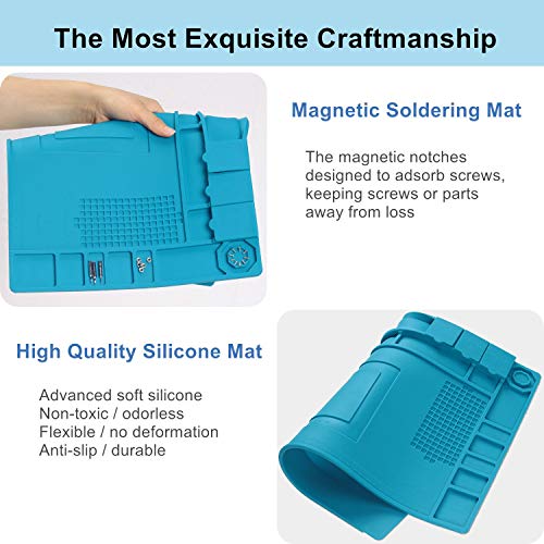Scout Heat Insulation Silicone Repair Magnetic Large Soldering Mat – Heat Resistant 500°C Electronics Workbench for Soldering Iron, Phone and Computer Repair (17.7” x 11.8”, Blue)