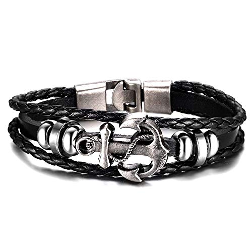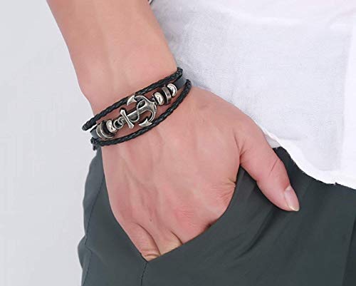 Shining Diva Fashion Leather Multi Strand Bracelet for Men and Boys
