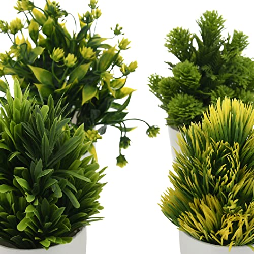 SHOPERIYA Artificial Wild Bonsai Plant with Pot for Home/Office Table Bathroom Greenery Room Decoration Home Decor Flower (Green, Set of 4) (Forest Green)