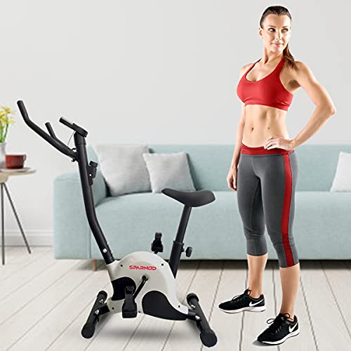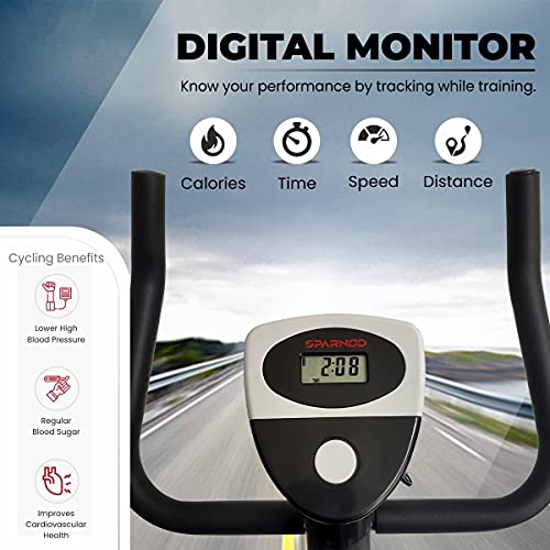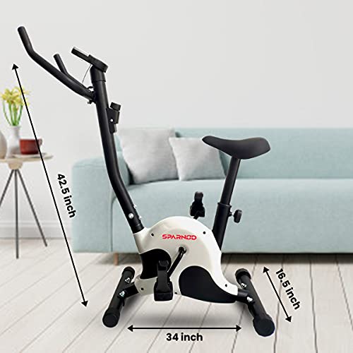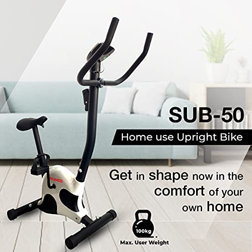 Sparnod Fitness SUB-50 Upright Exercise Bike for home gym – LCD Display, Height Adjustable Seat, Compact design – Perfect Cardio Exercise Cycle Machine for Small Spaces