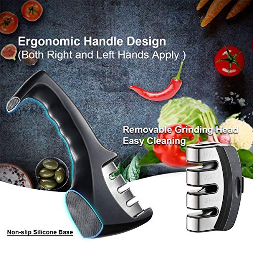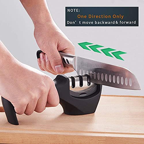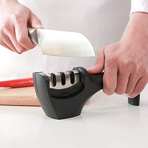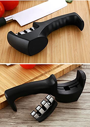 Sporton Easy Manual 3 Stage Knife Sharpener for Kitchen, 3 Stage Knives Sharpening Tool, Steel Knives Sharpener Rod for Kitchen
