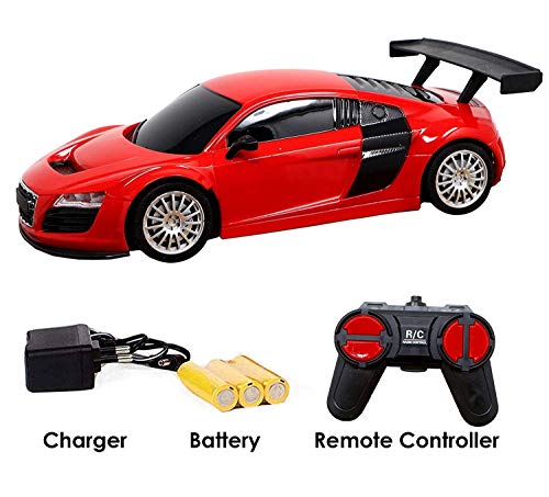 Super model high speed remote control car toy(Battery operated) with Lights And forward, backward buttons for kids, multi featured remote with forward and backward buttons and also has right, left turn and Stop functionality. Strong sculpted lines and bold design gives this car an exotic appearance. it is a battery operated toy but batteries are not included. use 2 x 1.5 v “aa” batteries for remote control car. Charger is included for charge rechargeable batteries. It is one of the best gift toy for your kids. kids would love to play with this remote control car for hours. it will make your child busy in playing with this toy. recommended for ages 3 years and above.