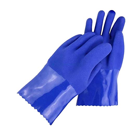 SSWW PVC Supported Gloves for Acid and Caustics Chemical Handling cotton interlock lined PVC hand gloves Multipurpose Reusable Waterproof Household Hand Gloves Chemical Resistant Ideal for Industrial Purpose Food Processing Agriculture Industrial Heavy Duty Work PVC Glove (Blue) |PACK OF 2 PAIR|