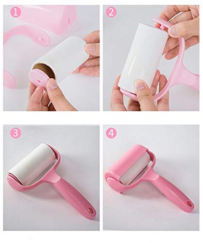 Sticky Lint Roller Hair Remover Cleaner Reusable&Plastic (1 Bracket + 3 Rolls of Paper 60 Sheets)