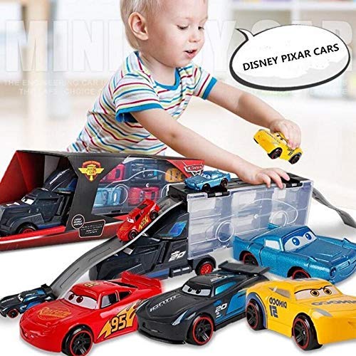 Storio 6 in 1 Vehicle Playsets McQueen Pixar Cars 3 Jackson Storm Daniel Swervez Mack Uncle Truck Hauler and 6PCS Mini Model Car Figure Toys for Kids
