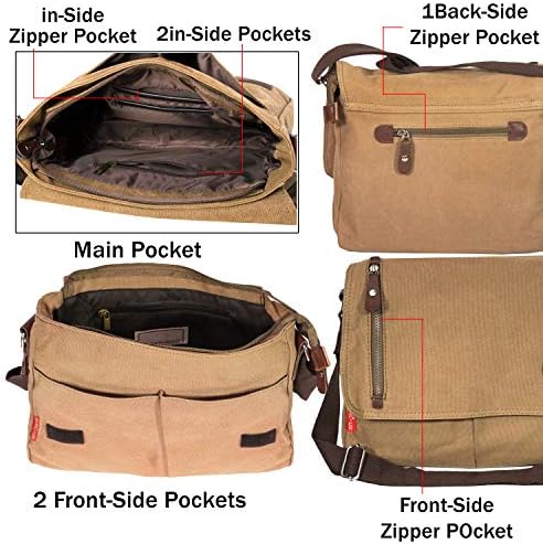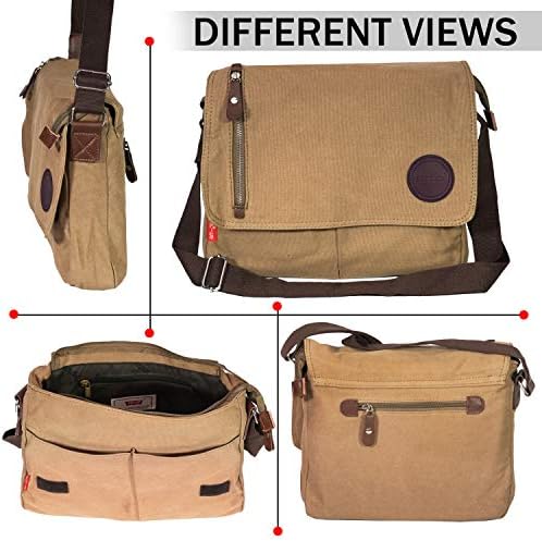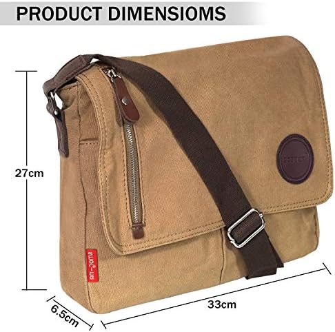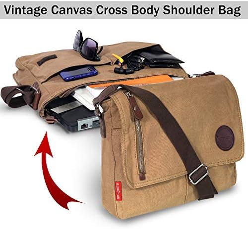 Storite Vintage Canvas Sling Cross Body Travel Office Business Satchel Messenger one Side Shoulder Bag -(33 cm x 6.5 cm x 27 cm, Brown)