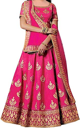 Stripe Fashion Girls Lehenga Choli Ethnic Wear Embroidered Lehenga, Choli and Dupatta Set -(9 to 15 year) (12-13 Years, dark pink)
