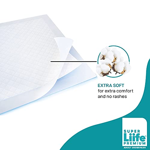 SUPER-ABSORPTION: Avoid messy puddles or irritation with Superliife underpads that have a super absorbent core to incorporate excellent absorbency of moisture and lock odor away from your body. It keeps skin dry and healthy.