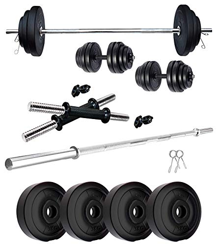 SUS Products 10 KG Home Gym Combo Kits of PVC Dumbbell Plate Set with 3 Ft Straight Rod + Locks Exercise & Fitness Sets (Weight 2.5 kg X 4= 10 kg)