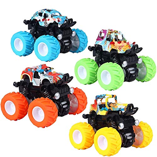 Product Description ★Sky Tech Monster car truck 4 pack 4WD Mini Devil Trucks Friction Powered Cars for Kids Big Rubber Tires Baby Boys Super Cars Blaze ...