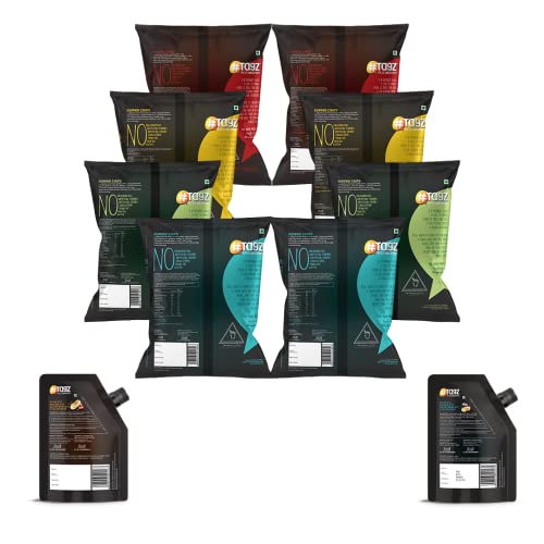 Tagz – Assorted Packs with 2 dips| 2 Dips (Pepper Jack Cheese and Chipotle)| 8 Packs (2 Barbeque, 2 Cream n onion, 2 Masala, 2 Salt)