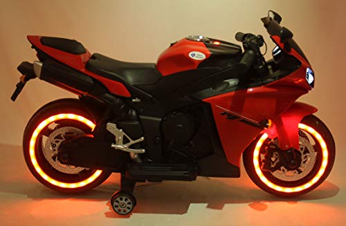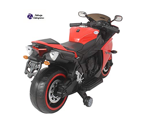 TALREJA ENTERPRISES Battery Operated Ride on Bike R1 with Hand Accelerator and Foot Brake and Lights – Rechargeable (RED Color)