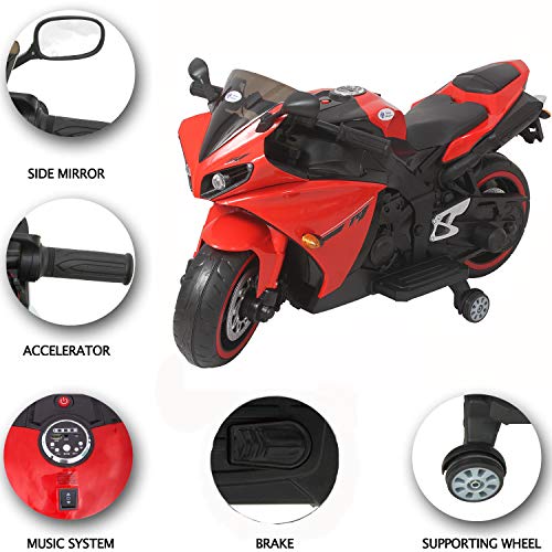 EASY TO RIDE – This Yamaha R1 Rideon Bike is simple for your child to ride on their own with adult supervision. It is battery operated with 550 single motor & Hand accelerator; has working headlights, taillights, wheel lights, exciting bike sound effects, key for start, Digital power display, forward/backward function, MP3 socket with SD/USB card port, adjustable volume, Horn & different inbuilt music for extra style and flair that your child will love.