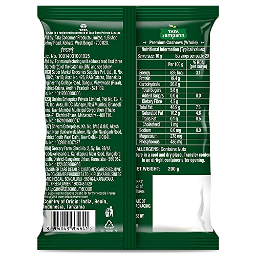 Tata Sampann 100% Pure Premium Cashews Whole, 200g