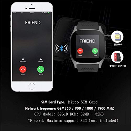 Tekno Smart Watch A1 Bluetooth Smartwatch, Android Smartwatch with Camera/SIM Card Slot Sports Watch Compatible with Smartphone Or Android Mobile Phones for Boys and Girls (A1 Black)