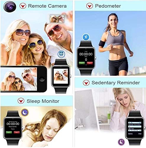⚡ Multifunctional Smartwatch: Sport health: Pedometer, Calories Calculation, Sedentary Reminder, Sleep Monitoring; Other features: Remote Capture, Music player, Alarm clock, Calendar, Camera (0.3M), Two-way anti lost reminder etc.