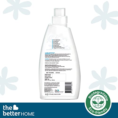 The Better Home Family Safe Laundry Liquid Detergent | Non Toxic, Bio Degredable and Eco Friendly | Baby & Pet Safe | With Added Water Softener | Front & Top Load Liquid Detergent | 500 ML