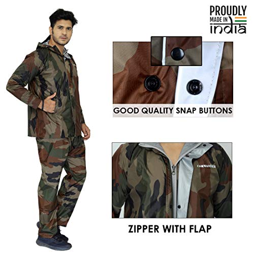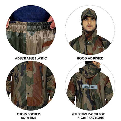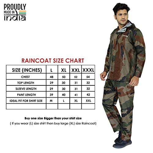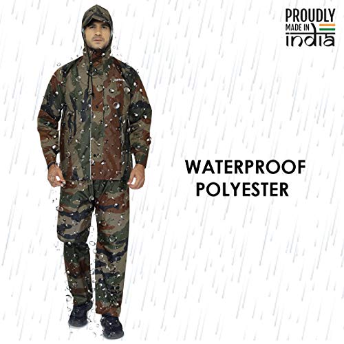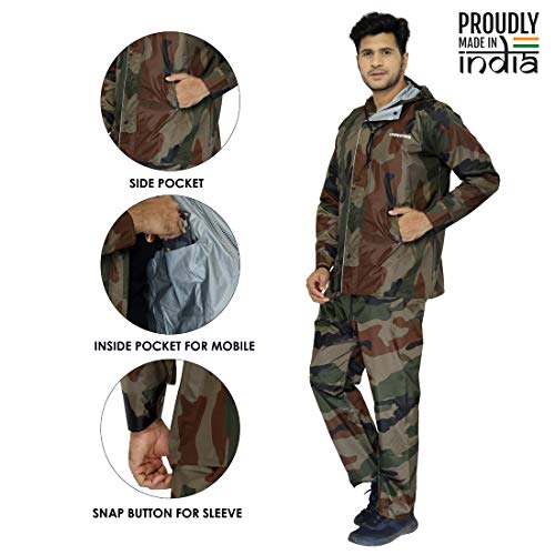 Construction: This Rainwear is made from Polyester material. Every joint is seam sealed with additional leak proof stitching making it completely waterproof. Overlaying flap with snap buttons over zippers prevents water seepage. It also comes with high collars and adjustable hood. Good quality elastics in trousers makes it super comfortable to wear. Jacket comes with spacious inner pocket to store your mobile safely. Front cross pockets as added advantage.