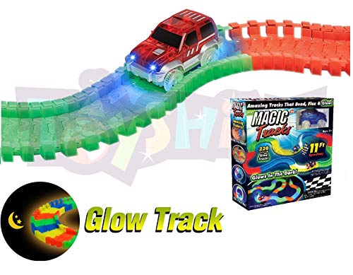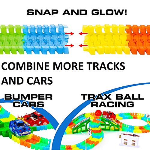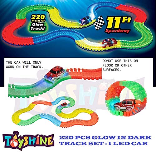 Toyshine Tracks Set Glow Race Car Set Toy Educational Twisted Flexible Tracks 220 Pcs with Electric Car Toys for Kids