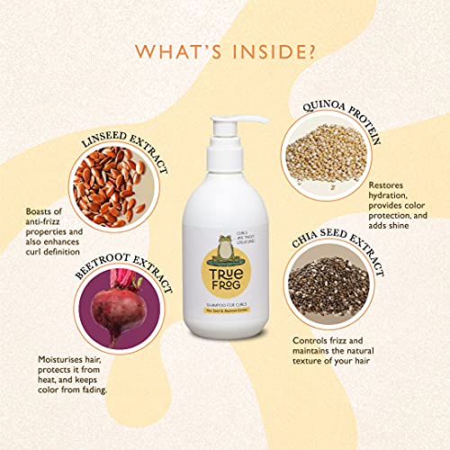 TRue FRoG Shampoo for Curly, Wavy, Dry and Frizzy Hair with Flaxseed and Beetroot Extract for Cleansing ,moisturizes and adds shine to Hair for Women, Men and Kids, Sulphate and Paraben Free – 250 ml