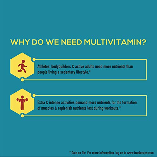 TrueBasics Multivit Sport One Daily, Multivitamin For Sports, Multimineral, Amino Acids with Antioxidant, Enhances Immunity, Energy, and Joint Health, 30 Multivitamin Tablets