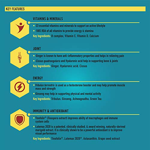 Immunity & Anti-Oxidant blend: Potent anti-oxidants like Tinofolin, Lutemax 2020, Astaxanthin, Grape seed extract in TrueBasics Multivitamin for Sport (From the house of Healthkart) help tackle free radical damage in the body and help boost immunity