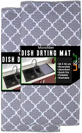 U & U UNIQUE UTILITIES Microfiber Dish Drying Kitchen Mat (Grey, 50 x 38 cm) Pack of 2